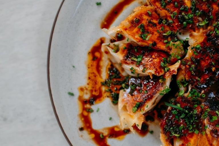 Pour sauce evenly over the dumplings.